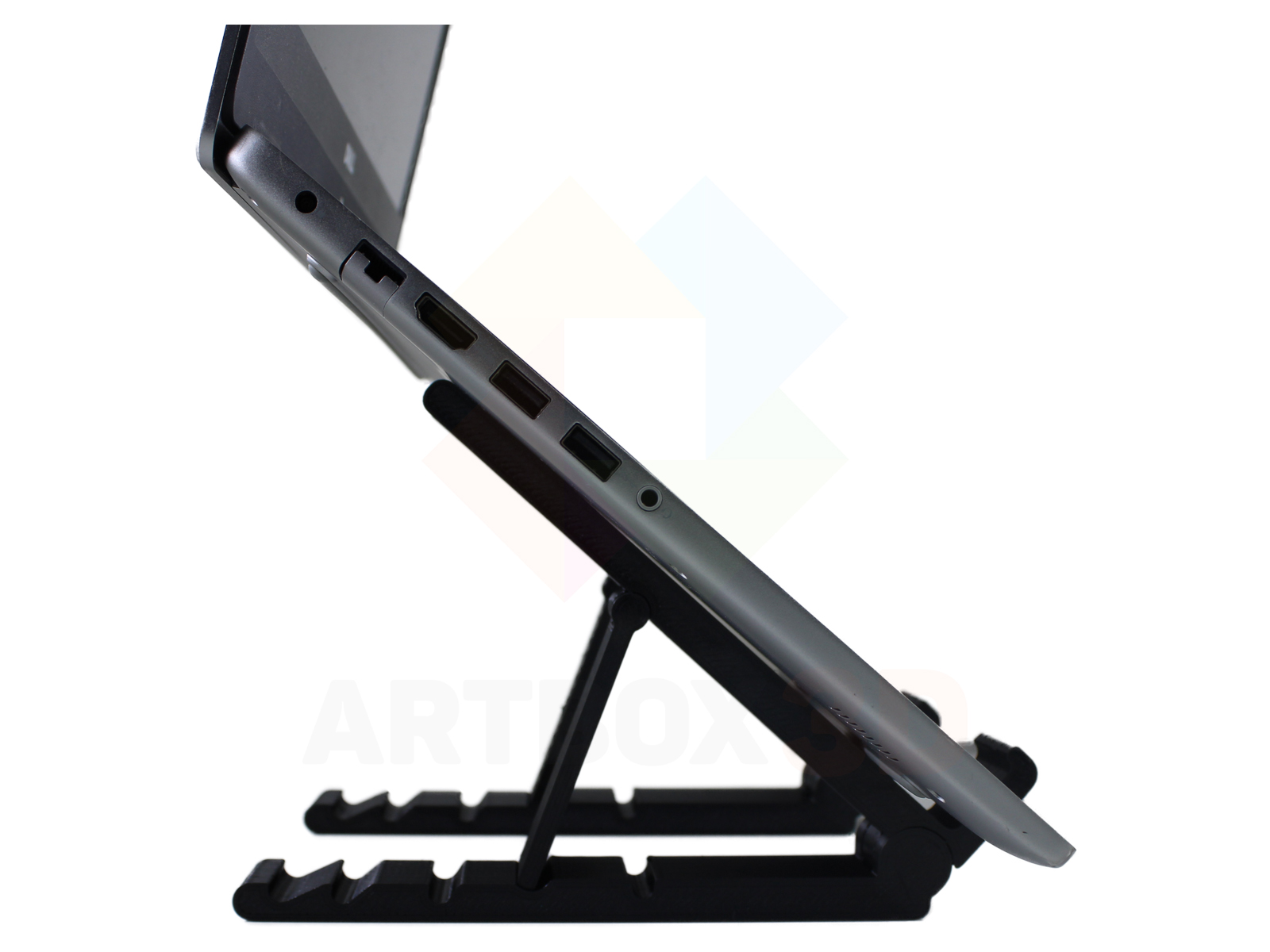 Desenvolvido pela ARTBOX3D, a Inovadora base de mesa para notebooks é desenhada para maximizar seu conforto e eficiência. Com ajuste de altura em quatro níveis, permite a melhor ergonomia possível, alinhando o laptop à linha dos olhos e minimizando a tensão no pescoço.