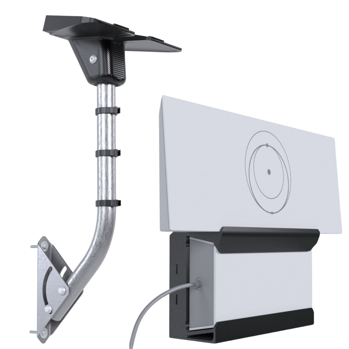 Material Resistente e Durável: Fabricado com materiais de alta resistência, o suporte proporciona suporte seguro e proteção contra quedas, garantindo longevidade e segurança para sua antena e modem Starlink.