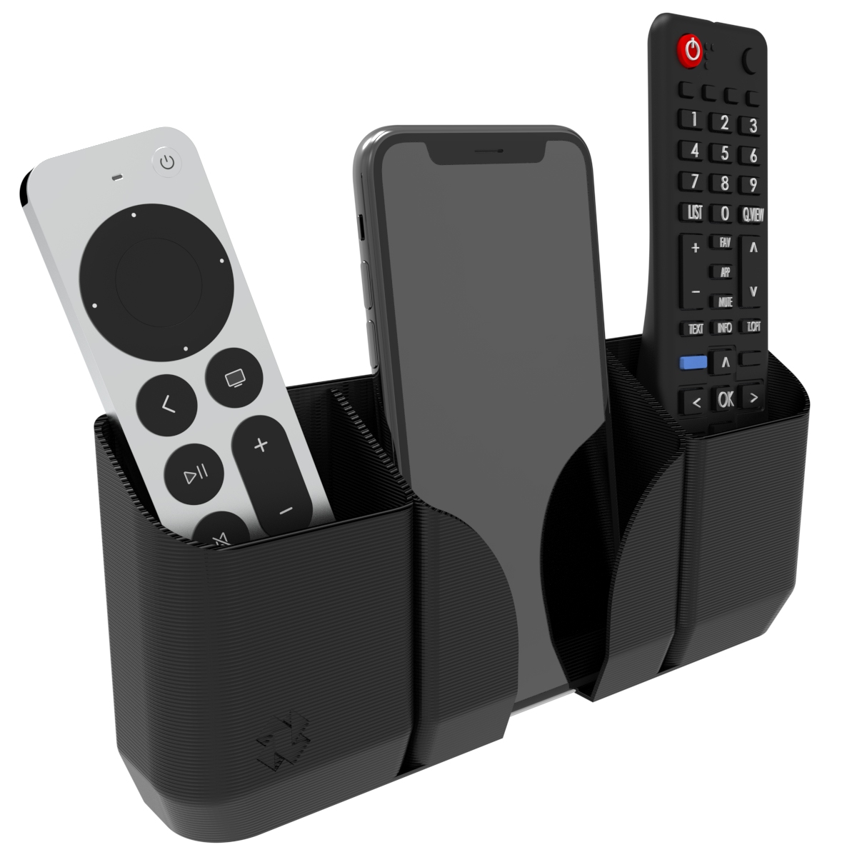 Desenvolvido pela ARTBOX3D, o Suporte de Parede Triplo para Controle Remoto e Celular é a solução ideal para manter tudo organizado e fácil de acessar. Perfeito para quem está cansado de perder tempo procurando pelos controles remotos, este suporte oferece uma instalação descomplicada com aderência dupla face, dispensando o uso de ferramentas.