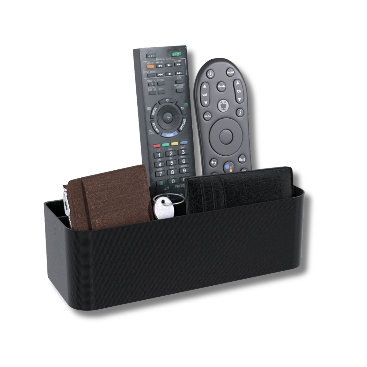 Organização prática para controles, carteiras, chaves e acessórios