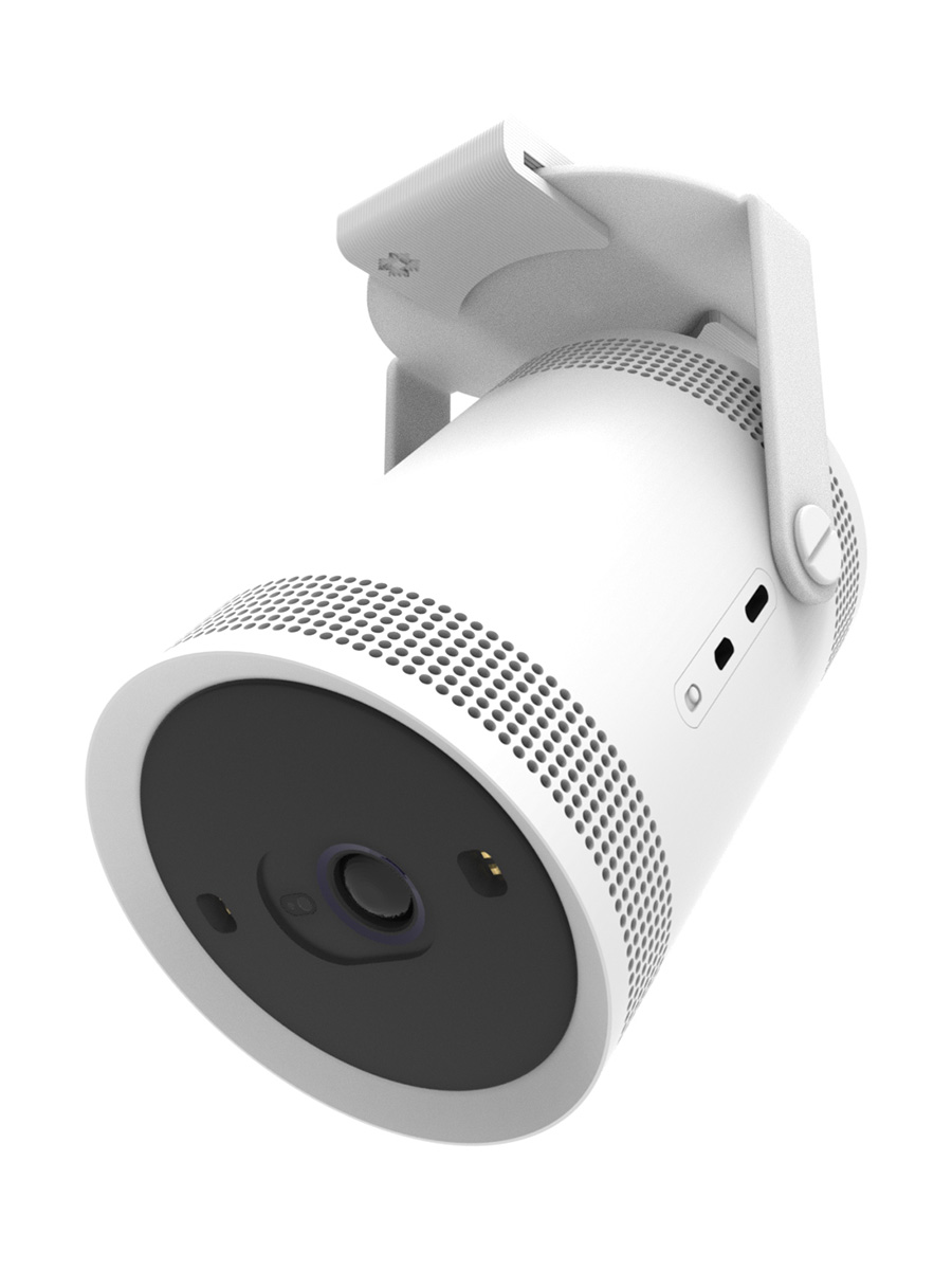 Pode ser facilmente fixado na parede ou no teto, permitindo a projeção do conteúdo em qualquer ângulo desejado. Seu design compacto e elegante se encaixa perfeitamente em qualquer ambiente. Disponível na cor branca.